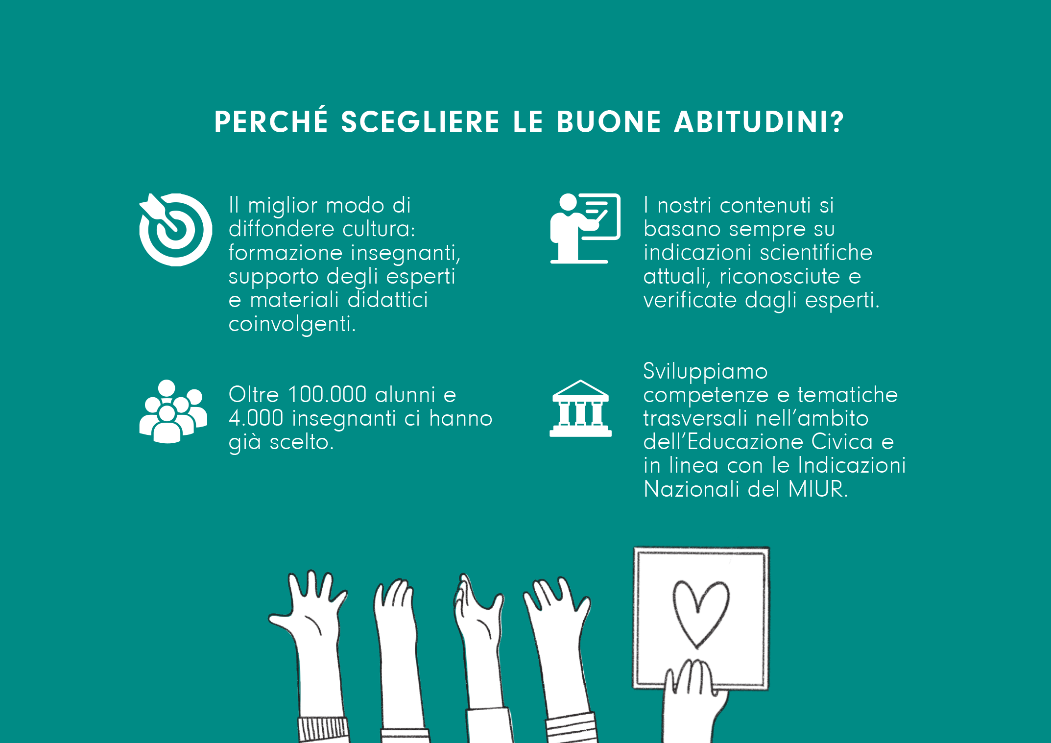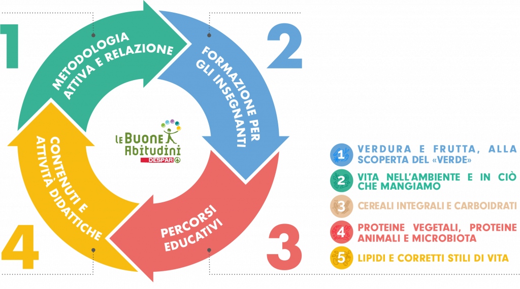 La piattaforma Le Buone Abitudini per la scuola primaria è studiata come un ciclo educativo che si rivolge agli insegnanti per promuovere la cultura della salute e accompagnare alunni e famiglie lungo tutto il cammino dalla classe prima alla quinta.