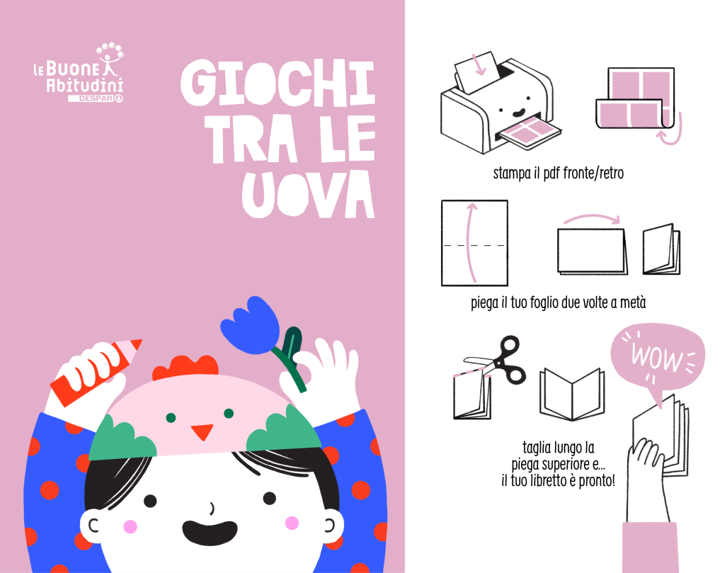 Stai cercando dei lavoretti e delle idee originali per prepararti alla Pasqua insieme ai bambini e alle bambine? Per questa speciale occasione, abbiamo realizzato il libretto GIOCHI TRA LE UOVA, dove puoi trovare semplici attività per stare insieme in famiglia, giochi di enigmistica (anche in inglese!), idee per decorare le uova con i colori naturali.