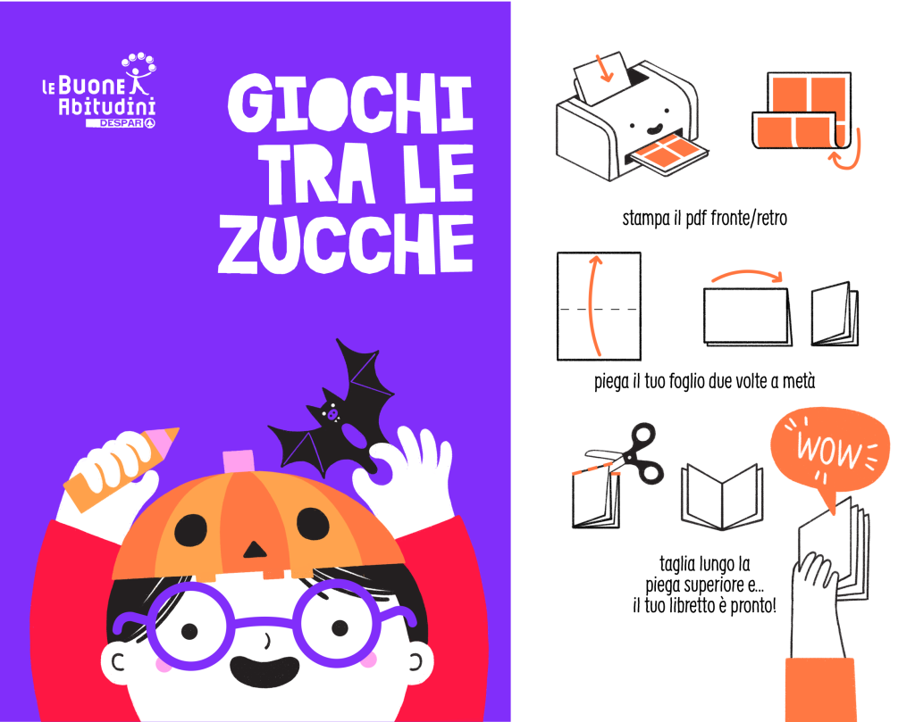 Sei alla ricerca di nuove idee per festeggiare Halloween insieme ai bambini e alle bambine? Abbiamo preparato per te il libretto GIOCHI TRA LE ZUCCHE con tanti giochi, attività manuali e consigli sostenibili per una festa divertente, paurosissima e soprattutto senza sprechi.