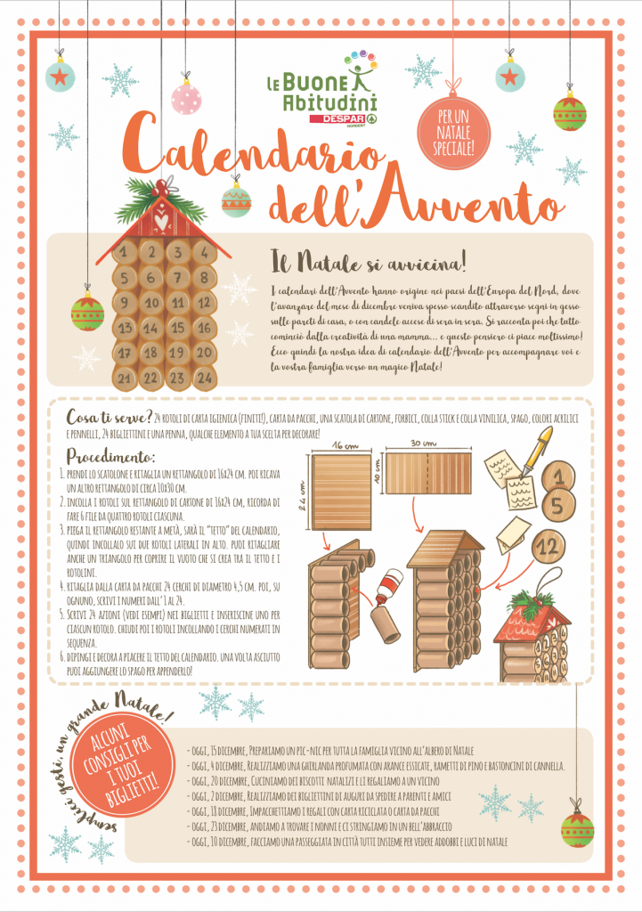 Si racconta poi che tutto cominciò dalla creatività di una mamma… e questo pensiero ci piace moltissimo! Ecco quindi la nostra idea di calendario dell’Avvento per accompagnare voi e la vostra famiglia verso un magico Natale!