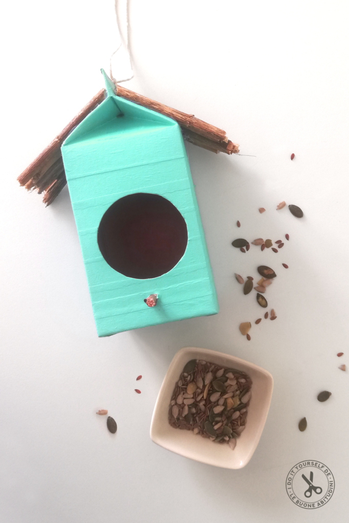 Segui il procedimento e, una volta terminato, appendi la casetta ai rami degli alberi in giardino oppure sul balcone di casa e … non dimenticarti di mettere al suo interno semi e cereali, gli uccellini ne saranno ghiotti!