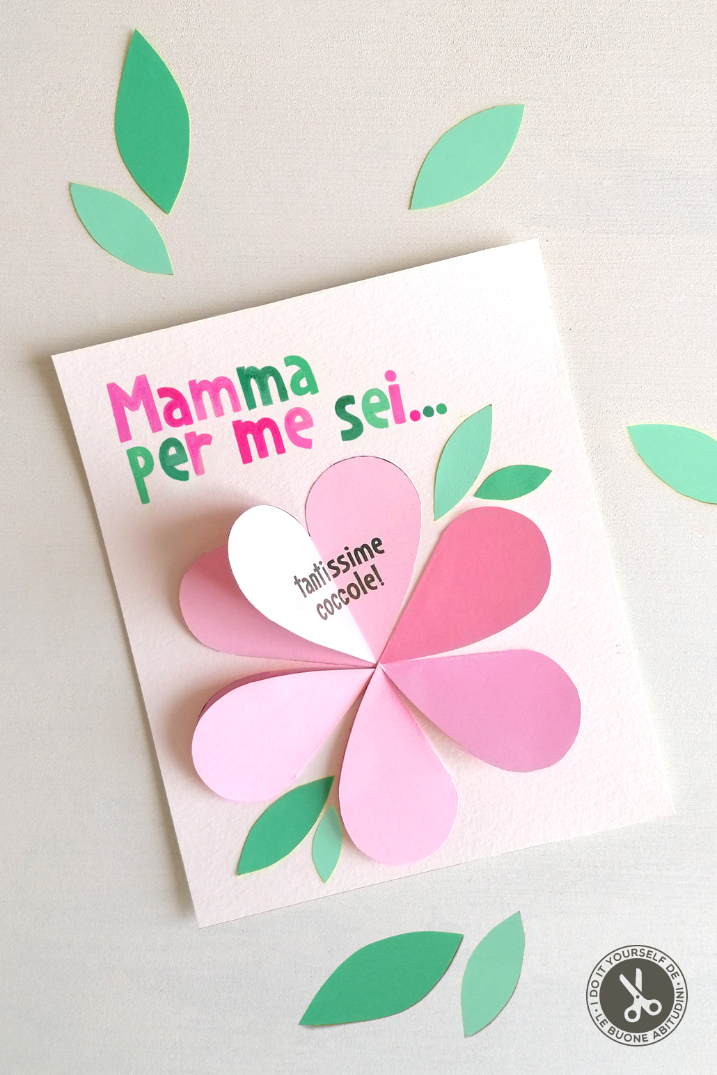 Oggi vi proponiamo un do it yourself per la Festa della Mamma, un bigliettino di auguri molto speciale (un fiore di cuori!) in cui il bambino può esprimere tutto l’amore che prova per la sua mamma, il giorno della sua festa.