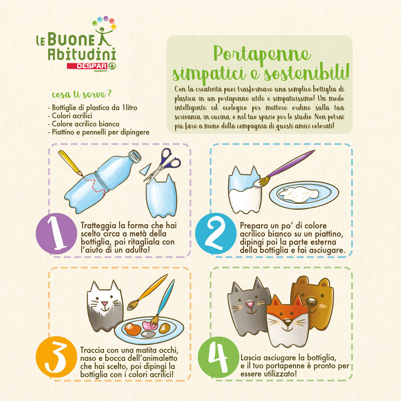 Con la creatività puoi trasformare una semplice bottiglia di plastica in un portapenne utile e simpaticissimo!