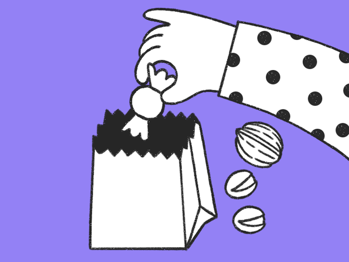 Riempi ogni sacchettino con frutta a guscio (noci, mandorle…), frutta essiccata (uvetta, datteri…), cioccolatini (meglio se fondenti!) oppure con ciò che preferisci.
