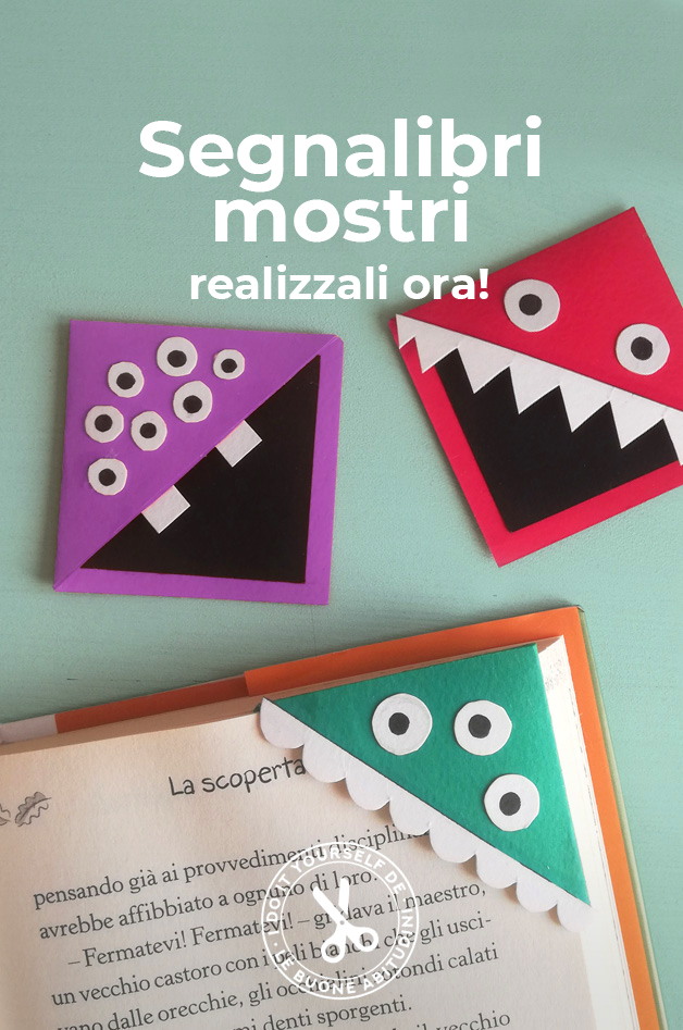 E noi, oggi, vogliamo proporti un’attività semplice e divertente: i segnalibri mostri. Realizza insieme ai bambini uno o più segnalibri fai da te e sbizzarritevi a creare le facce più “mostruose”!