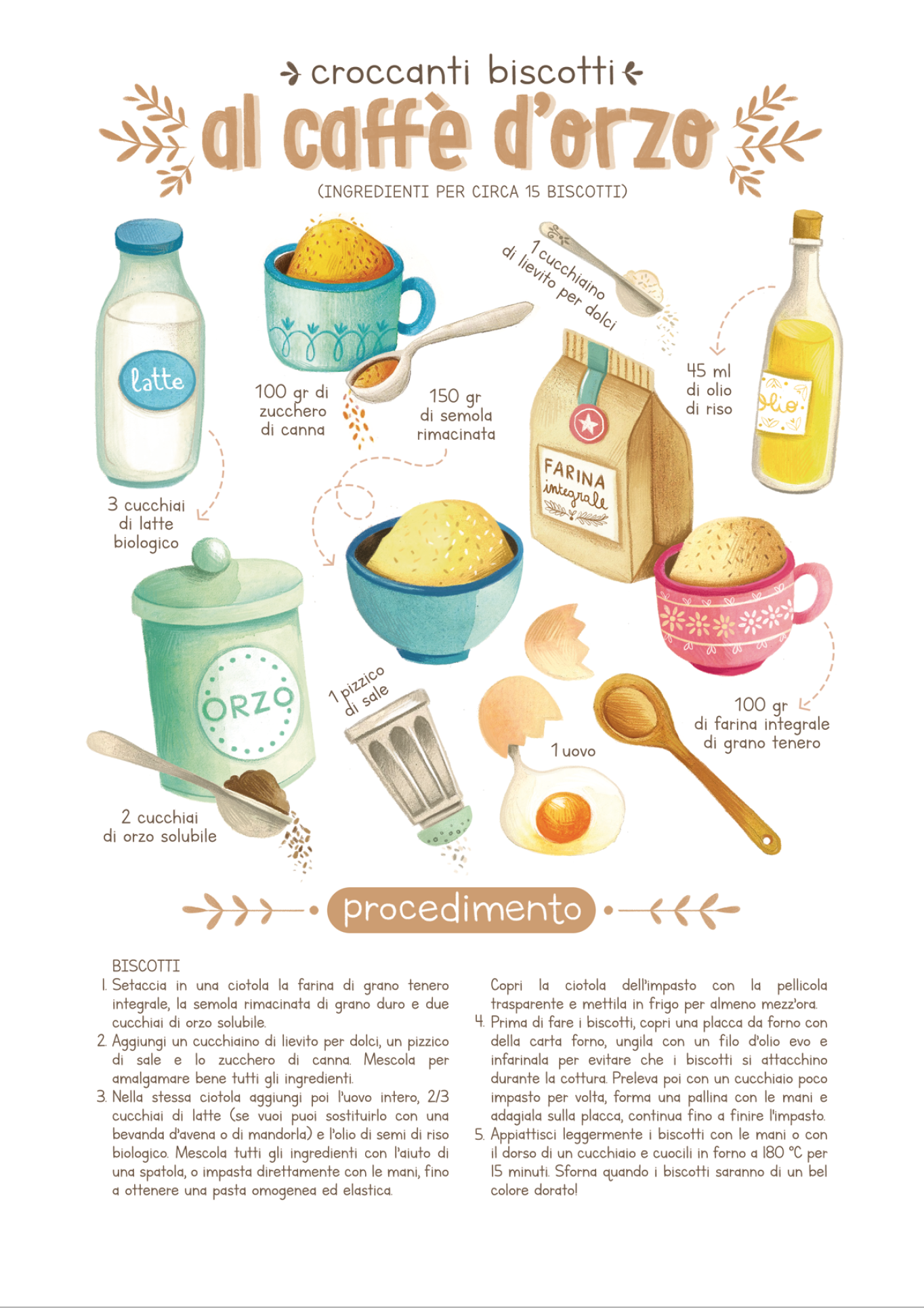 Croccanti biscotti al caffè d’orzo, ideali a colazione o per un piccolo spuntino Delicati e facilmente digeribili, conquisteranno proprio tutti, anche i più piccoli…! Assicurando il carburante necessario per soddisfare tutte le necessità di un organismo in crescita.
