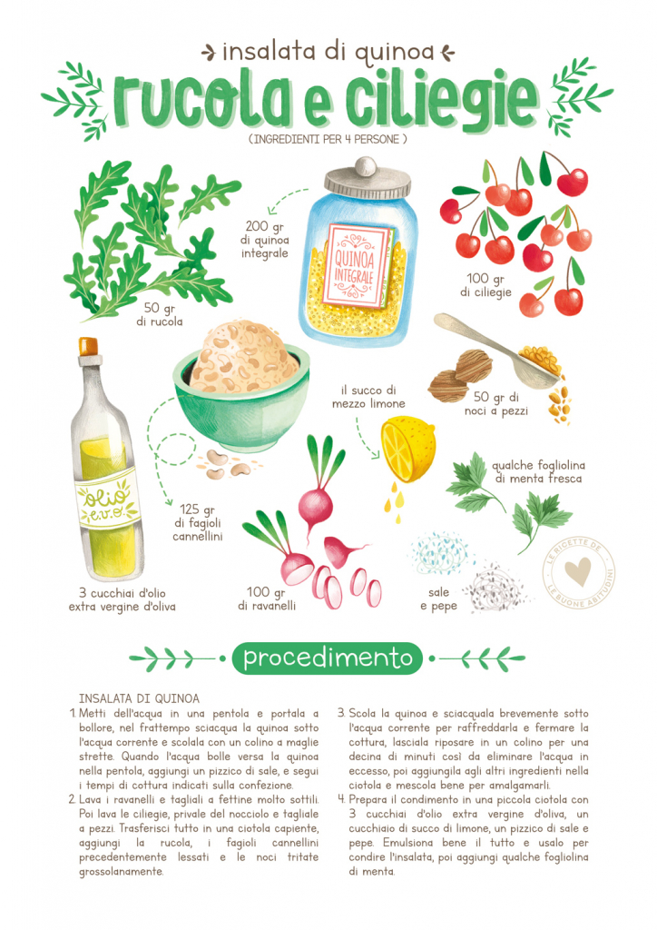 Prepara subito la tua insalata di quinoa, rucola e ciliegie: