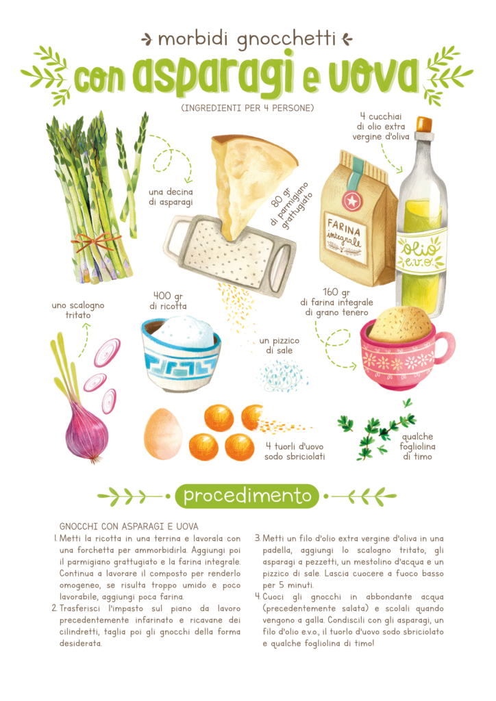 Se non vedi l’ora di cucinarli ma pensi che ai bambini non piaceranno, non preoccuparti, abbiamo la ricetta che fa per te: un piatto che abbina un leggero sughino di asparagi a sapori delicati molto amati dai più piccoli: gnocchi, ricotta e parmigiano.