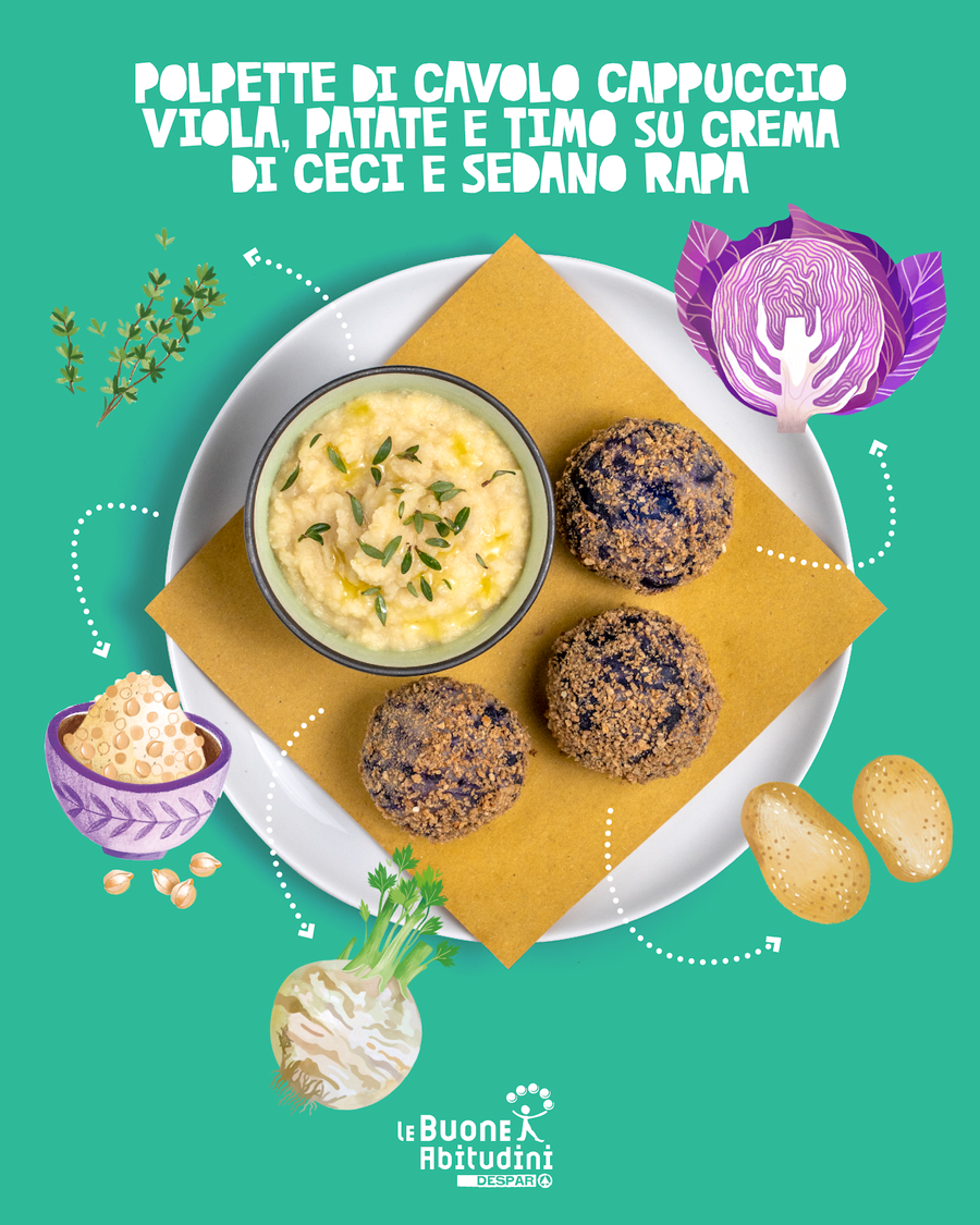 Stai cercando una ricetta che porti tanto colore, sapore e soprattutto salute nei pasti invernali di tutta la famiglia? Ecco allora un abbinamento di cui non potrai più fare a meno: cavolo viola, sedano rapa, patate e ceci. Quattro ingredienti speciali, un Piatto Unico da scoprire e, naturalmente, da provare!