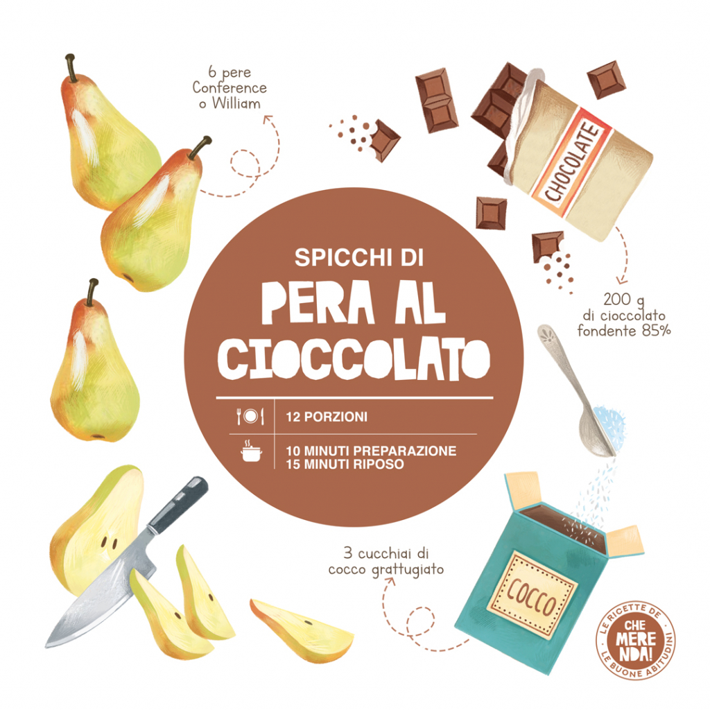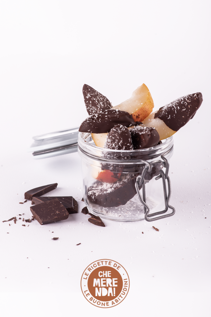 Frutta a merenda per i bambini? Nulla di più facile grazie a questa golosa idea: gli spicchi di pera al cioccolato! Un celebre accostamento che, oltre a dare la carica necessaria ai più piccoli, soddisferà i palati più esigenti, grazie alla dolcezza delle pere e al gusto deciso del cioccolato fondente.