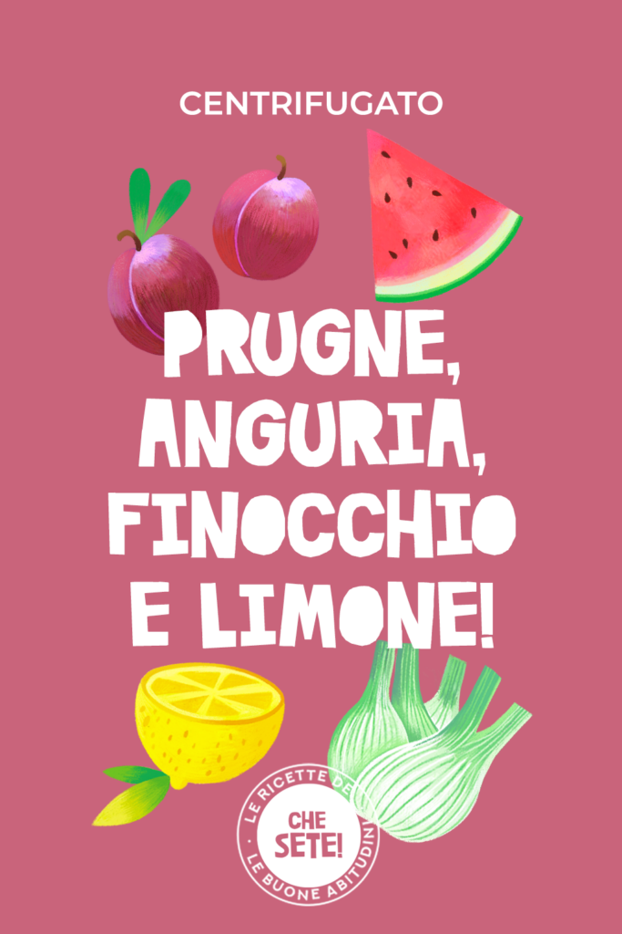 Centrifugato a base di prugne, anguria, finocchio e limone: un cocktail vitaminico che unisce le proprietà diuretiche del finocchio a quelle antiossidanti del limone, la funzione protettiva dell’anguria a quella riequilibrante delle prugne, e non solo.